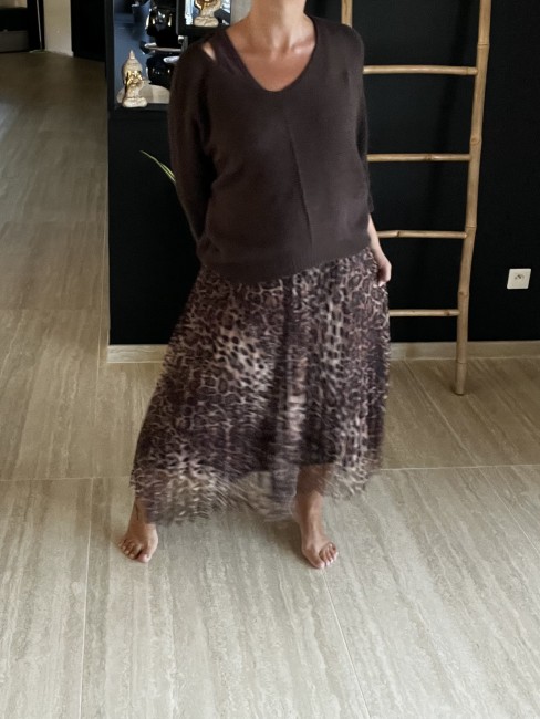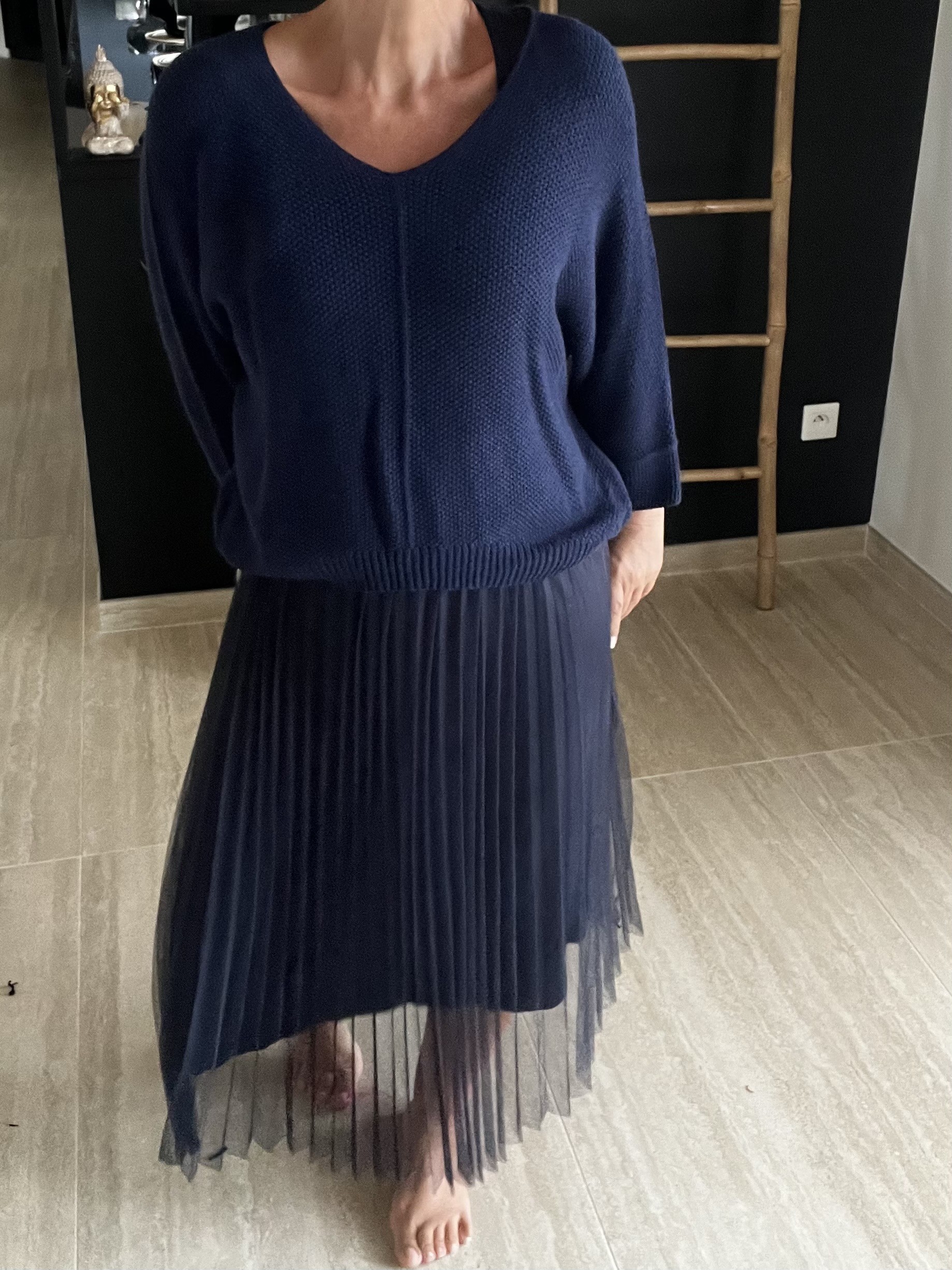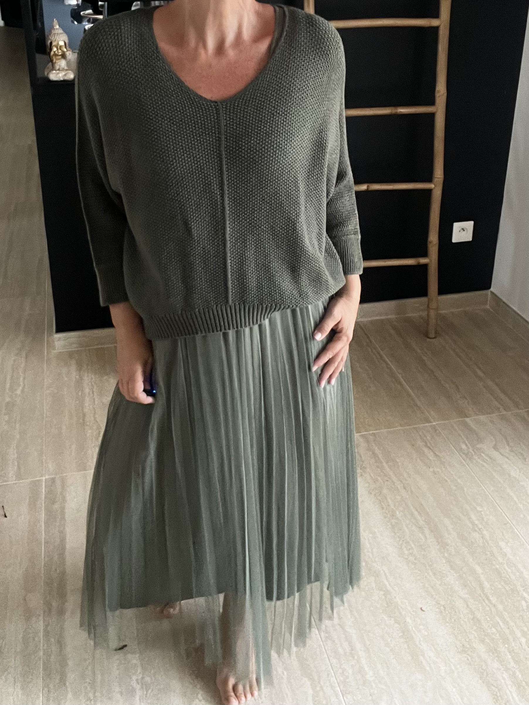 Jolie duo Robe longue plissée avec pull nid d'abeille