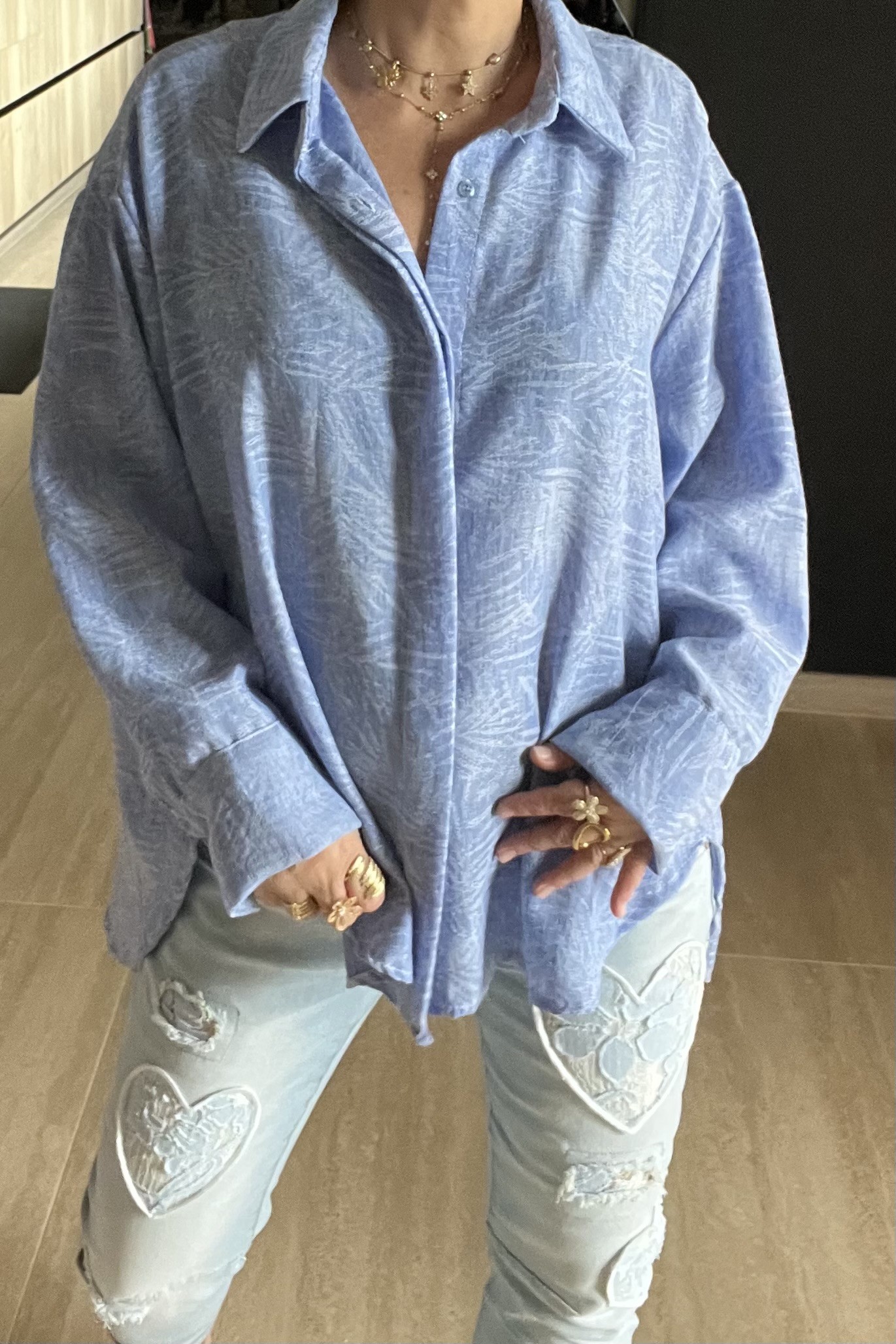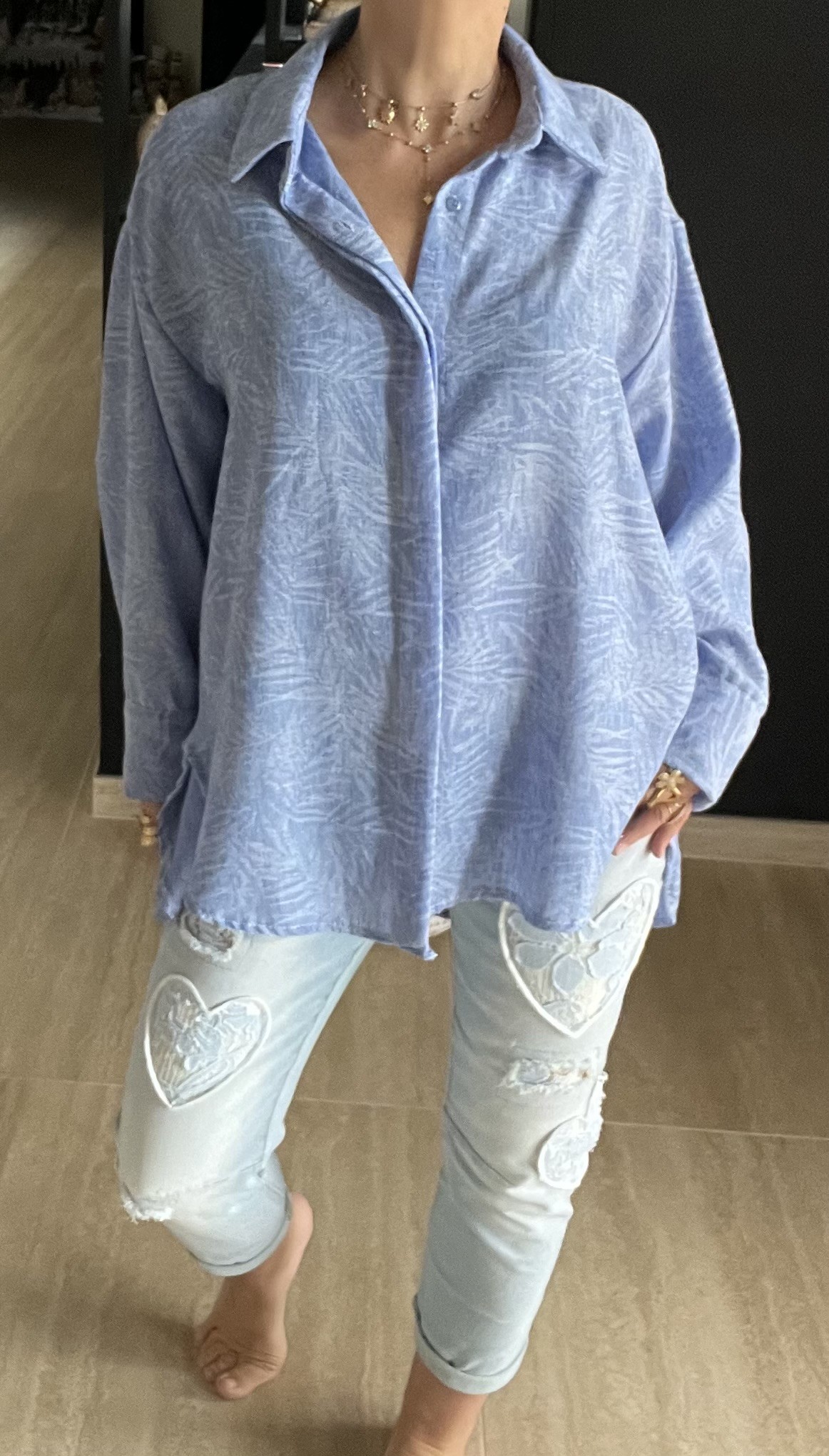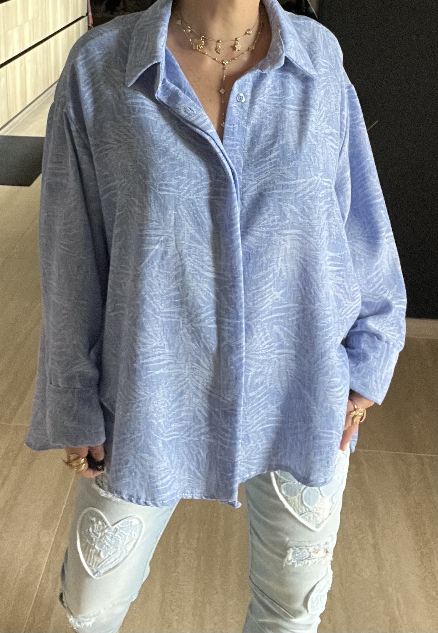 Chemise ample avec motif plus courte devant et plus longue derriére