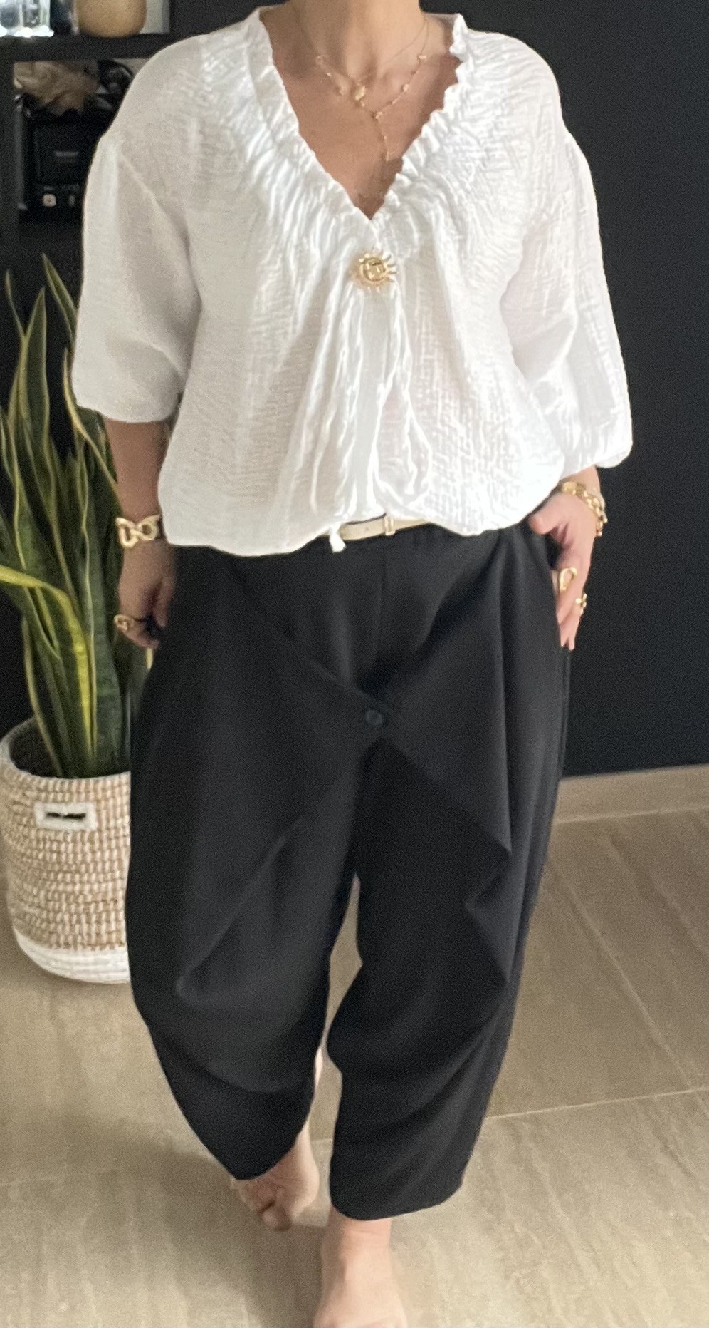 Pantalon croisé devant fluide avec poches sur le coté